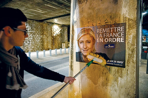 How much the FN has revamped its image will be tested in the coming elections. Recent polls have Le Pen and 39-year-old centrist Emmanuel Macron, a former investment banker and minister in the ruling Socialist administration, as the front-runners in the first round of balloting on April 23. Mr. Macron, who broke from the embattled Socialists last year, is running under his own party, En Marche!, or On the Move.